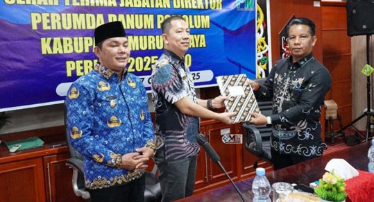 Puruk Cahu – Serah Terima Jabatan (Sertijab) Direktur Perumda Danum Pomolum Kabupaten Murung Raya (Mura) berlangsung di Aula A Kantor Bupati Mura, Jumat (17/10/2025). Jabatan direktur kini resmi diemban oleh Kelong, menggantikan pejabat sebelumnya, Plt. Direktur Jayadie Y. Dadi.