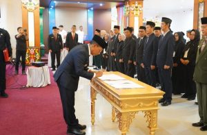 Puruk Cahu – Bupati Murung Raya, Heriyus, memimpin pelantikan dan pengambilan sumpah/janji Penjabat (Pj) Sekretaris Daerah, pengukuhan pejabat administrator dan pengawas, serta pelantikan pejabat fungsional di lingkungan Pemerintah Kabupaten Murung Raya. Kegiatan ini berlangsung di Aula Cahai Ondhui Tingang, Gedung B Kantor Bupati Mura, Rabu (12/11/2025).
